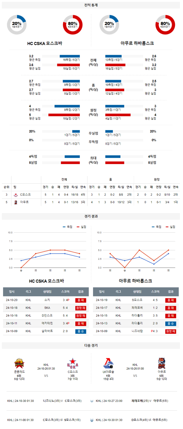 10월 24일(목) 01:30KHLCSKA모스크:아무르 하키분석자료