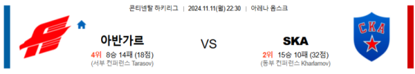 11월11(월) 22:30KHL아반가르트:SKA 하키분석자료