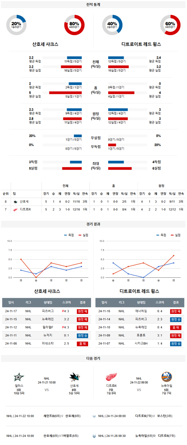 11월19(화)12:30NHL산호세:디트로이트 하키분석자료