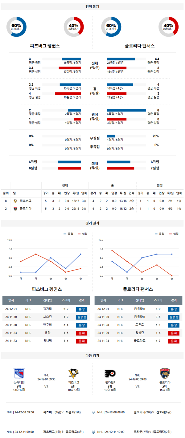 12월04(금) 09:00NHL피츠버그:플로리다 하키분석자료