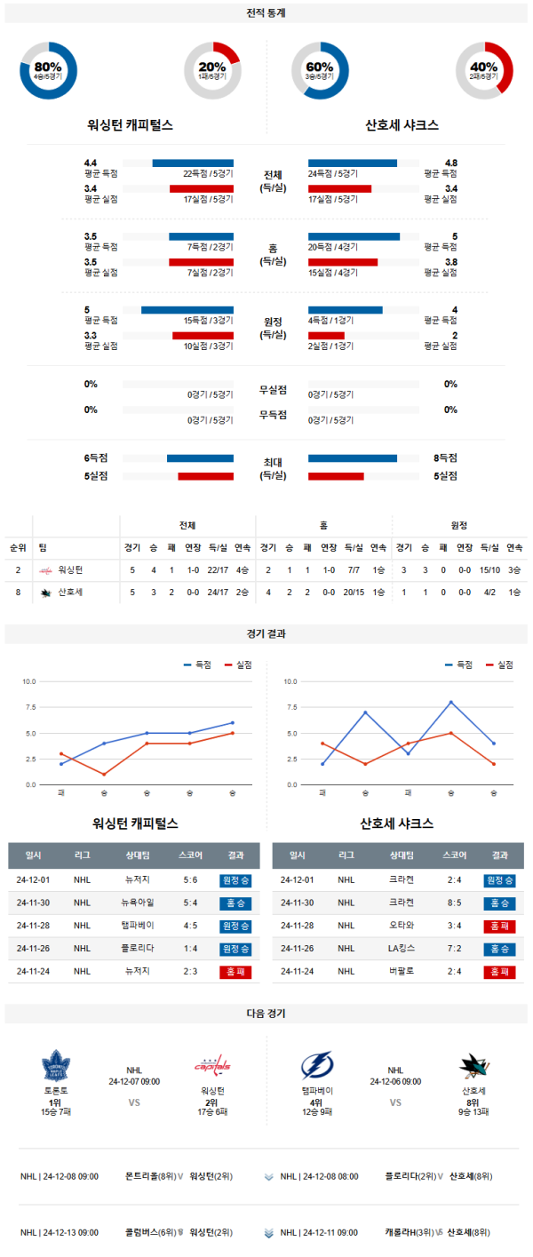 12월04(금) 09:00NHL워싱턴:산호세 하키분석자료
