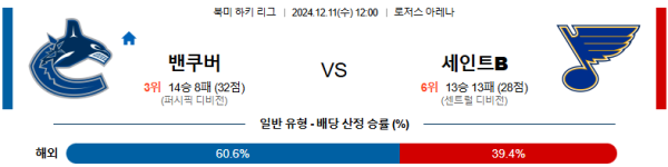 12월11(수) 12:00NHL밴쿠버:세인트루이스 하키분석자료