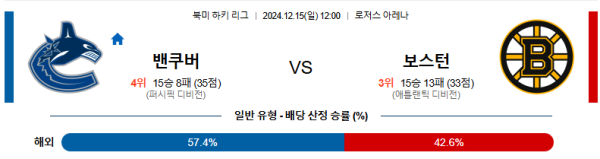 12월15(일) 12:00NHL밴쿠버:보스턴 하키분석자료